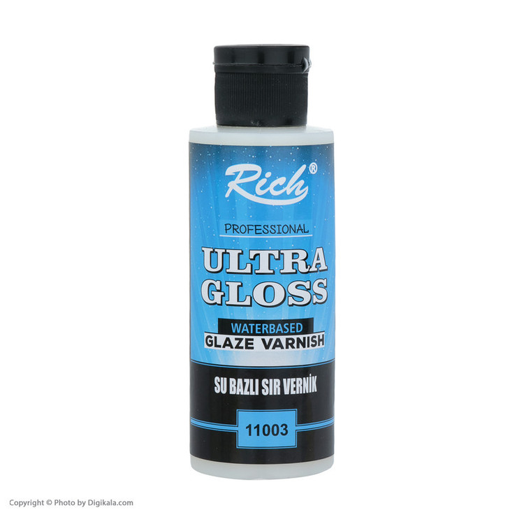 وارنیش ریچ یک محلول بر پایه آب است که یک محافظت بالا شبیه یک لایه فیلم را بر روی کار شما ایجاد میکند. این محلول بسیار براق بوده و برای سطوح کلیه کارهای هنری یک لایه محکم ، با دوام و تمیز و شفاف ایجاد می کند. برای استفاده بهتر است دو لایه از محلول استفاده شود .
