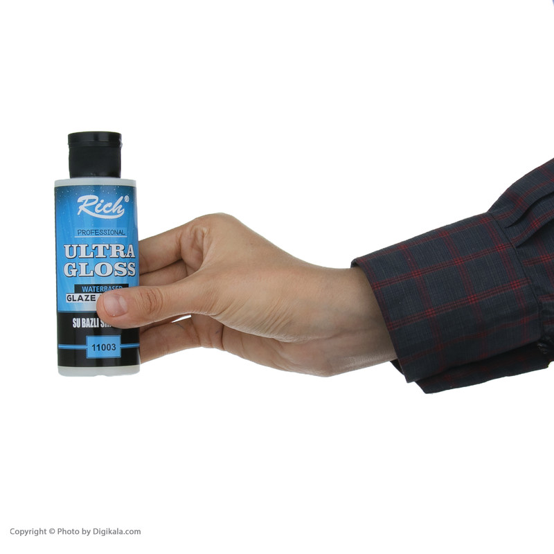 وارنیش ریچ یک محلول بر پایه آب است که یک محافظت بالا شبیه یک لایه فیلم را بر روی کار شما ایجاد میکند. این محلول بسیار براق بوده و برای سطوح کلیه کارهای هنری یک لایه محکم ، با دوام و تمیز و شفاف ایجاد می کند. برای استفاده بهتر است دو لایه از محلول استفاده شود .