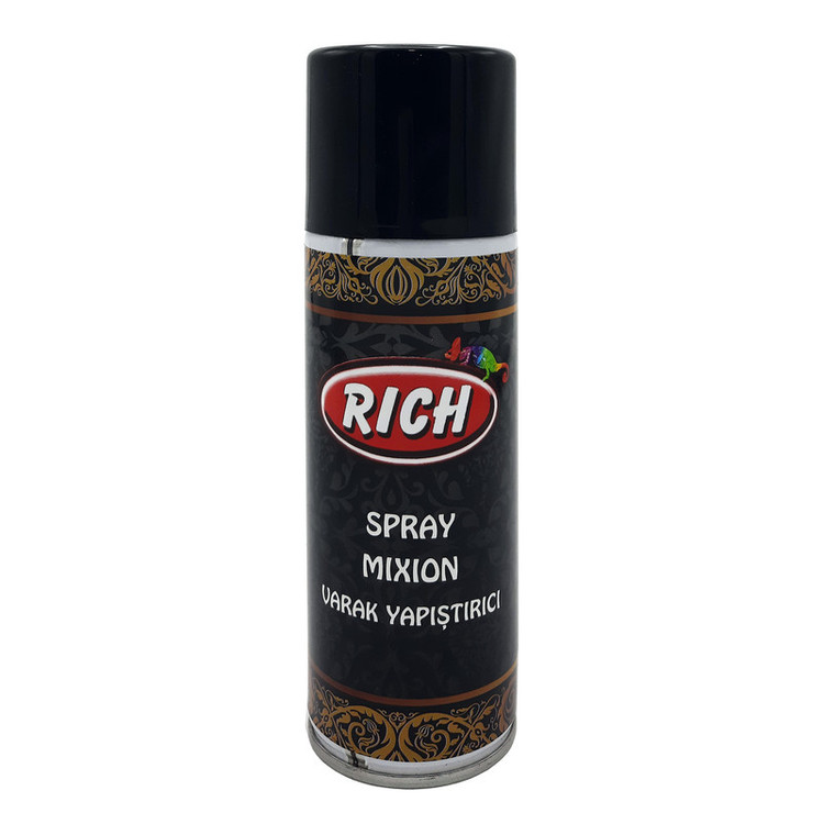 ریچ (Rich) در سال 1996 در استانبول تأسیس شد و در زمینه تولید صنایع دستی سرگرمی و هنری را با نام تجاری Rich فعالیت دارد؛ از جمله محصولات ریچ میتوان به رنگ اکرلیک مات و متالیک ، مولتی سورفیس ، کهنه کاری و ... اشاره کرد، از چسب ورق طلا برای چسباندن انواع ورق های فلزی مانند ورق طلا، نقره و مس بر روی سطوح شیشه ای،چوبی،و... استفاده می شود، مزیت استفاده از اسپری چسب ورق طلا نسبت به نوع مایع علاوه بر استفاده ی آسان و به صرفه بودن، برای برخی سطوح که با قلم مو قابل چسب کاری نیستند نیز مناسب است، برای استفاده سطح کار را حتما قبل از چسب زدن، کاملا تمیز کنید و بعد چسب را روی سطح کار اسپری کنید، بعد از اسپری میبایست مدت زمان 5 دقیقه صبر کنید تا چسب خشک شود، سپس ورق طلا را روی چسب بچسبانید، یکی از نشانه های خشک شدن چسب ورق طلا شفاف و بی رنگ شدن آن است، همچنین میتوانید از وارنیش بر روی آن استفاده نمایید.