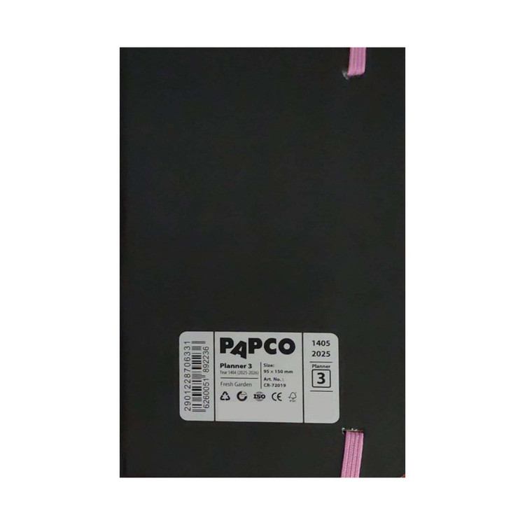 دیدن محصولات مرتبطاگر شما هم از آن دسته افرادی هستید می خواهید یادداشت و چک لیست تان همیشه همراهتان باشد و برای هر قدمتان برنامه ای دارید که باید چک شود، ما با تولید دفتر پاپکو پلنر 3 کد CR – 720 به کمک شما آمده ایم. این دفتر در صفحات اولیه شامل برگه مشخصات فردی، تلفن های ضروری تهران، جدول تبدیل مقیاس ها، یادداشت و جدول ماهانه و هفتگی می باشد. هر برگه به جدول یک هفته اختصاص داده شده و در صفحه مقابل آن فضایی برای یادداشت همان هفته وجود دارد. همچنین در ادامه جدول هایی برای ثبت مشخصات و اطلاعات تماس مخاطبین وجود دارد. در جداره داخلی جلد پشت نیز یک پاکت تعبیه شده که در آن چهار برگ استیکر 84 عددی (336 عدد) برای مناسبت ها و یادآوری ها و ... قرار داده شده است.