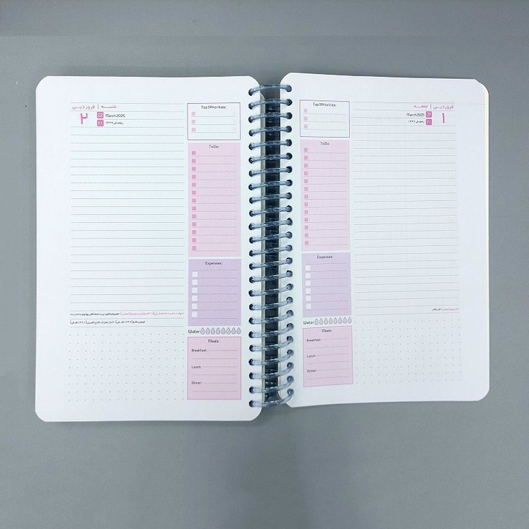 محصول دفتر برنامهریزی سم مدل سالنامه طرح پاستلی یک ابزار عالی برای سازماندهی و برنامهریزی روزهای سال است. این دفتر دارای ویژگیهای زیر است: - **طرح و رنگهای پاستلی**: طراحی زیبا و جذاب با رنگهای ملایم و آرامشبخش که باعث ایجاد حس خوبی در هنگام استفاده میشود. - **فنر شفاف**: استفاده از فنر شفاف و با کیفیت که نه تنها زیبایی دفتر را افزایش میدهد، بلکه به راحتی ورقزدن صفحات کمک میکند. - **قابلیت برنامهریزی جزئی**: این دفتر به کاربران این امکان را میدهد که روزهای سال را به صورت دقیق و جزئی برنامهریزی کنند، مناسب برای افرادی که نیاز به نظم و ترتیب بیشتری در برنامههای روزانه دارند. این دفتر میتواند به عنوان یک ابزار کمککننده برای دانشآموزان، دانشجویان و حتی حرفهایها مورد استفاده قرار گیرد و به بهبود مدیریت زمان و افزایش بهرهوری کمک کند. شرح باید در قالب جملات کامل با افعال مناسب باشد. همچنین شرح کالا باید با رعایت اصول نگارشی نوشته شود.