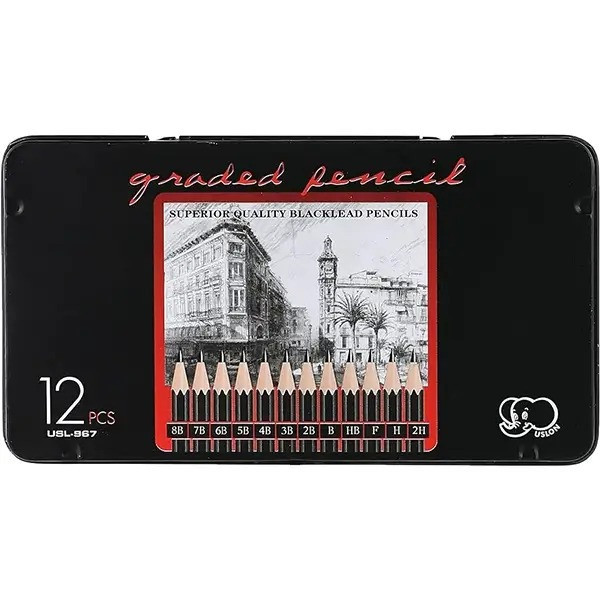 ست حرفه ای مداد طراحی که شامل 12 عدد مداد با گریدهای مختلف است در این مجموعه شماره های (8B، 7B، 6B، 5B، 4B 3B، 2B، 2B، B، HB، F، H، 2H) موجود میباشد که نیازهای هر هنرمندی را به صورت کامل برطرف میکند. دو ویژگی مهمی که برای انتخاب مداد طراحی باید در نظر داشت و در این مجموعه هر دو این موارد وجود دارد قابلیت راحت و ساده تیز کردن مداد و همچنین پاک کردن اثر مداد است که در مدادهای USLON میتوانید هر دو را ببینید. ویژگی های کلیدی: مداد با کیفیت عالی مقاومت باورنکردنی درمقابل فشار و شکستن گرافیت بسیار نرمک و خالص به آرامی روی کاغذ می لغزد آسان برای پاک کردن و تیز کردن کیفیت بالا با داشتن این مجموعه از مدادها به همراه جعبه فلزی برای نگهداری مدادهای طراحی خود دغدغه نخواهید داشت و همچنین میتوانید انها را به راحتی حمل کنید. جعبه های فلزی حس بسیار شیک و برتری را به شما می دهد و نشان دهنده این است که یک ست مداد طراحی حرفه ای را به همراه خود دارید.