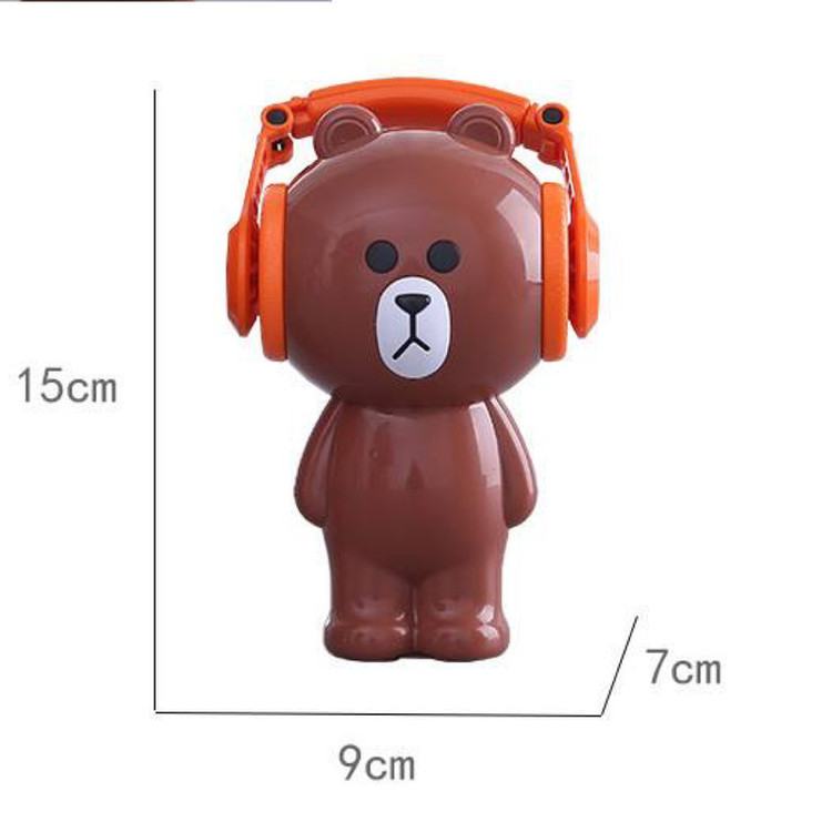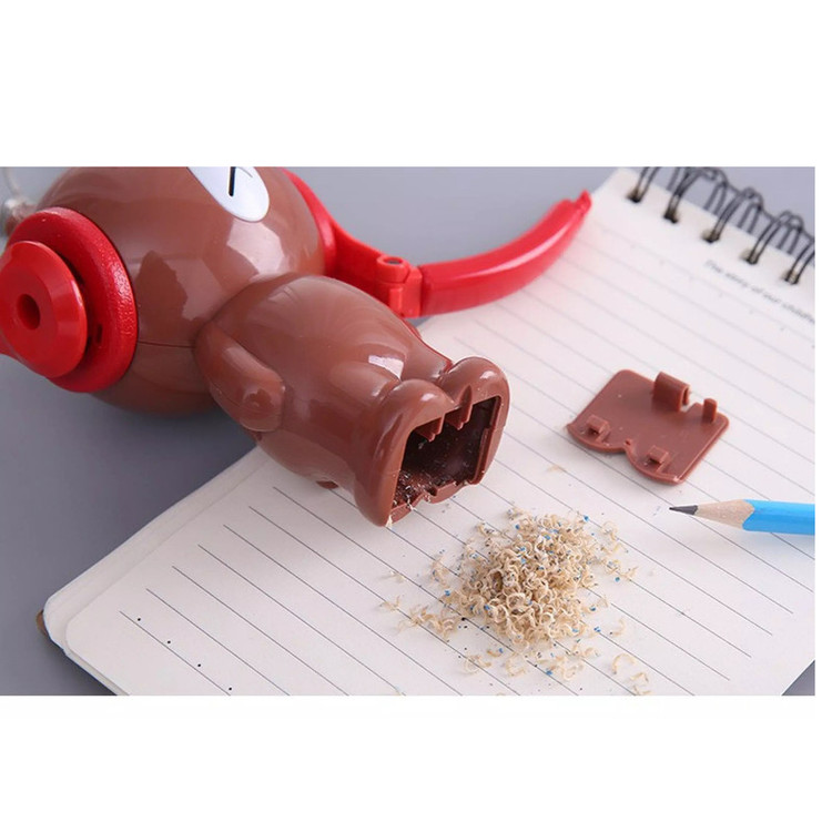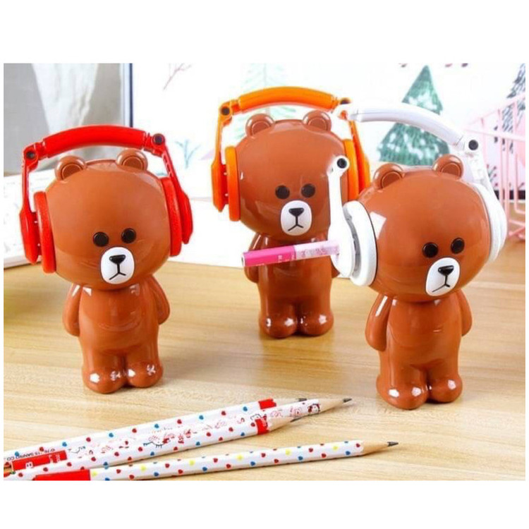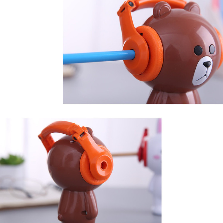 تراش رومیزی مدل خرس با طراحی زیبا در سه رنگ متفاوت برای هدفون آن می باشد.استفاده از راحت و قابل استفاده برای کودکان است.مخزن مدادتراش در پایین پای خرس قرار دارد.مداد به صورت افقی وارد هدفون خرس که در قسمت چپ آن قرار گرفته است میشود و برای تراش کردن هدفون را باز کرده به سمت راست چرخانده و مداد را تراش میکند.
