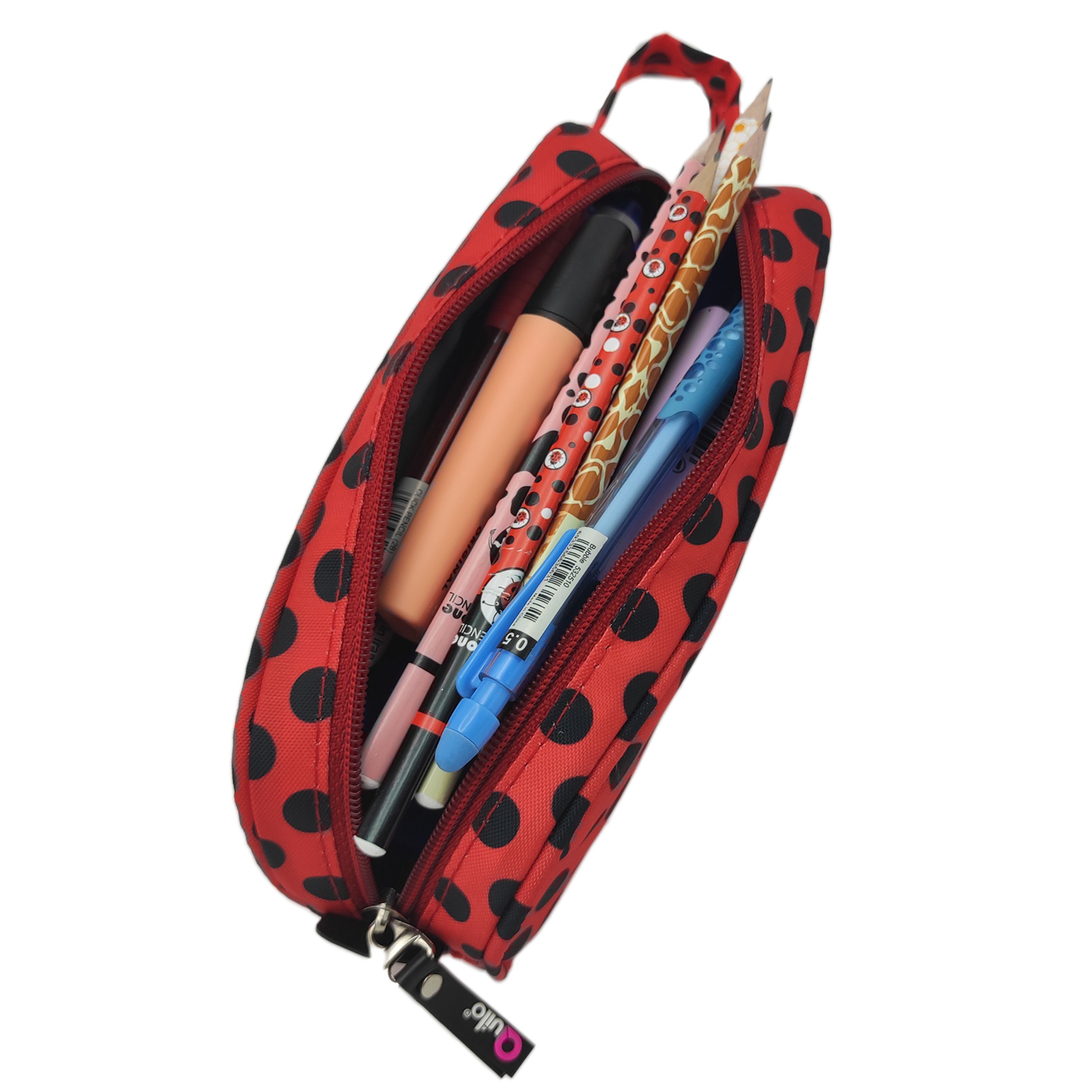 این جامدادی با طرح های جذاب و کیفیت عالی محصولیست جادار که می تواند کلیه لوازم تحریر یک فرد شامل تعداد زیادی خودکار، مداد، ماژیک، تراش و پاک کن را درون خود جای دهد.
