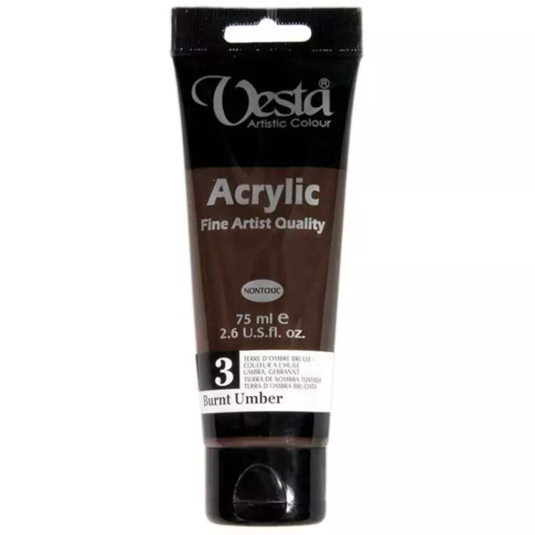 رنگ اکریلیک وستا مدل 03 Burnt Umber حجم 75 میلی لیتر