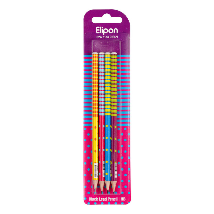 مداد مشکی الیپون مدل فانتزی گرد کد 8101640 بسته 4 عددی