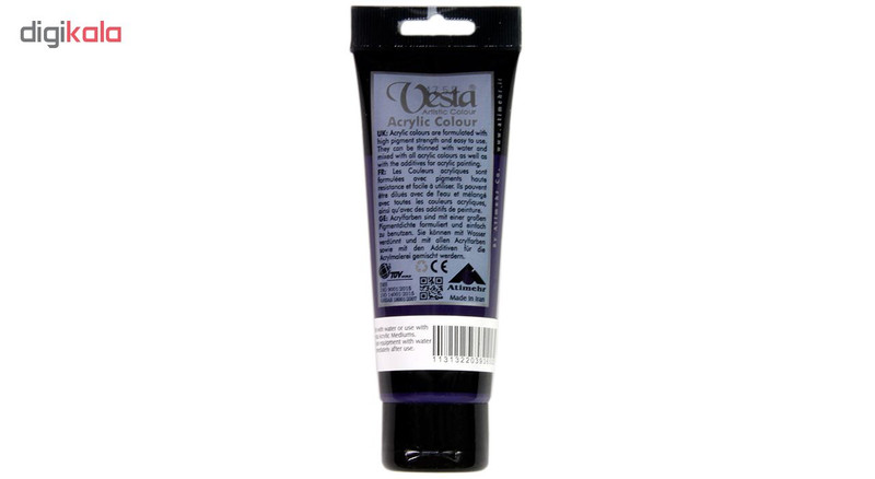 سایر توضیحاترنگ بنفش دیوکسازین دارای سایههای درخشان با خشکی و پایداری بالا نفوذپذیری عالی هوا در رنگ قدرت چسبندگی فوقالعاده مقاومت خوب در برابر آب امکان مخلوط شدن با سایر رنگهای اکریلیک وستا و همچنین سایر مکملهای نقاشی اکریلیک ساخت ایران