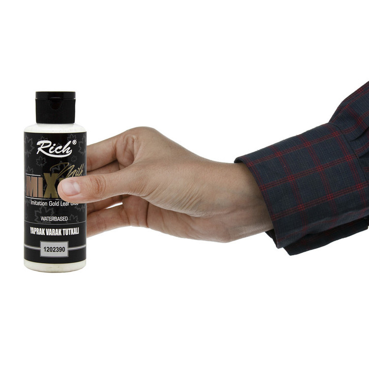 ریچ (Rich) در سال 1996 در استانبول تأسیس شد و در زمینه تولید صنایع دستی سرگرمی و هنری را با نام تجاری Rich فعالیت دارد؛ از جمله محصولات ریچ میتوان به رنگ اکرلیک مات و متالیک ، مولتی سورفیس ، کهنه کاری و ... اشاره کرد، چسب ورق طلای ریچ مدل MIXION بر پایه آب فرموله شده است، از چسب ورق طلا برای چسباندن انواع ورق های فلزی مانند ورق طلا،نقره بر روی سطوح شیشه ای،چوبی،و... استفاده می شود، برای استفاده سطح کار را حتما قبل از چسب زدن کاملا تمیز کنید و بعد با استفاده از قلم مو یا ابر روی سطح لایه نازکی از چسب بزنید و تا خشک شدن کامل آن صبر کنید.سپس ورق طلا را روی چسب بچسبانید، یکی از نشانه های خشک شدن چسب ورق طلا شفاف و بی رنگ شدن آن است، همچنین میتوانید از وارنیش بر روی آن استفاده نمایید.
