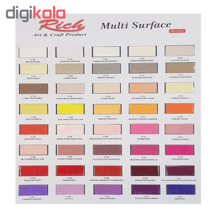 اگر به دنیال تغییر رنگ در لوازم اطراف خود هستید و میخواهید به سلیقه خود رنگ و تنوع ایجاد کنید می توانید از سری رنگهای مولتی سرفیس استفاده کنید زیرا رنگ های مولتی سرفیس قابل استفاده برای تمام سطوح فلزی - پلاستیکی - شیشه - چوب - سرامیک - پلی استر - پارچه - چرم و سایر سطوح این رنگ ها در برار حرارت مقاوم هستند و نیازی به تثبیت کننده ندارند. برای گرفتن بهترین نتیجه از رنگ های مولتی سرفیس روی بعضی از سطوح، لازم است مرحله رنگ آمیزی چندین بار انجام شود. به این منظور در مرحله اول سطح کار با لایه نازکی از رنگ پوشانده شود و بعد از دو ساعت مرحله بعدی رنگ آمیزی صورت می گیرد . رنگ های مولتی سرفیس بعد از سه الی چهار ساعت خشک می شود . اما برای خراشیده نشدن و یا قرار دادن بر روی حرارت مستقیم باید کار به مدت ۲۱ روز استراحت کند .