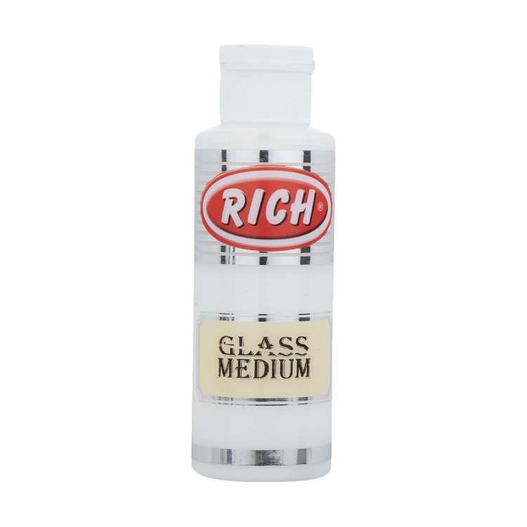 گلس مدیوم ریچ یک نوع واسطه کار روی شیشه می باشد روی ظروف شیشه ای قبل از انجام هر کاری استفاده می شود و موجب سر ریز شدن و باعث استحکام می شود این مدیوم برای رنگ پذیر شدن سطح هایی که رنگ پذیر نیستن استفاده می شود مثل شمع ، شیشه ، کاشی و ... برای استفاده ابتدا سطح را تمیز کرده سپس یک لایه نازک از مدیوم را روس سطح زده بعد از خشک شدن سطح مورد نظر آماده رنگ آمیزی می باشد