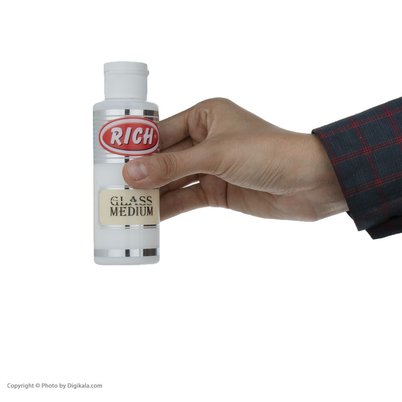 گلس مدیوم ریچ یک نوع واسطه کار روی شیشه می باشد روی ظروف شیشه ای قبل از انجام هر کاری استفاده می شود و موجب سر ریز شدن و باعث استحکام می شود این مدیوم برای رنگ پذیر شدن سطح هایی که رنگ پذیر نیستن استفاده می شود مثل شمع ، شیشه ، کاشی و ... برای استفاده ابتدا سطح را تمیز کرده سپس یک لایه نازک از مدیوم را روس سطح زده بعد از خشک شدن سطح مورد نظر آماده رنگ آمیزی می باشد