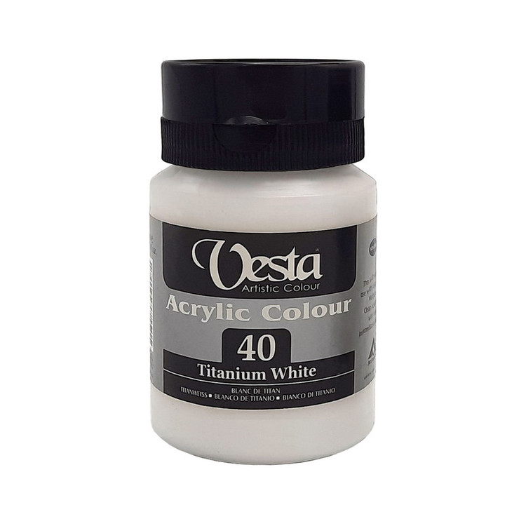 برند و نام تجاری (وستا) Vesta برگرفته از نام ایرانی کهن اوستا می باشد، این شرکت در تولیدات خود، اتباط با اساتید و هنرمندان و بهره گیری از تجارب و نظرات ارزشمند ایشان را سر لوحه ی خود قرار داده است، رنگ اکریلیک انعطافپذیر است و به همین علت روی سطوح مختلف قابل اجرا است، این نوع رنگ ها در مقابل نور و اشعه UV مقاوم اند، ماندگاری بالایی دارند. مقاومت در برابر سایش، قابلیت شستشو، سرعت خشک شدن بالا، سهولت اجرا، سازگار با محیط زیست، قدرت پوشانندگی بسیار عالی ، عدم بوی نامطبوع از سایر ویژگی های این رنگ است، این رنگ ها از بهترین مواد اولیه و با بهره گیری از تکنولوژی ساخته شده اند، خواص ضد باکتری و کپک دارند و ایجاد حساسیت نمیکنند، رنگ اکریلیک بر آب پایه است و قابلیت رقیق شدن با آب را دارد، مراقبت کمتری نسبت به سایر رنگها نیاز دارند، امکان مخلوط شدن با سایر رنگهای اکریلیک وستا و همچنین سایر مکملهای نقاشی اکریلیک هم از موارد قابل ذکر است، رنگ اکریلیک وستا برای ایجاد پوشش بافت در سطوح مختلف مناسب است، اکریلیک وستا بو ندارد، غلظت بالایی دارد و به سرعت خشک میشود. این مدل در بطری 250 میلی لیتری عرضه میشود.